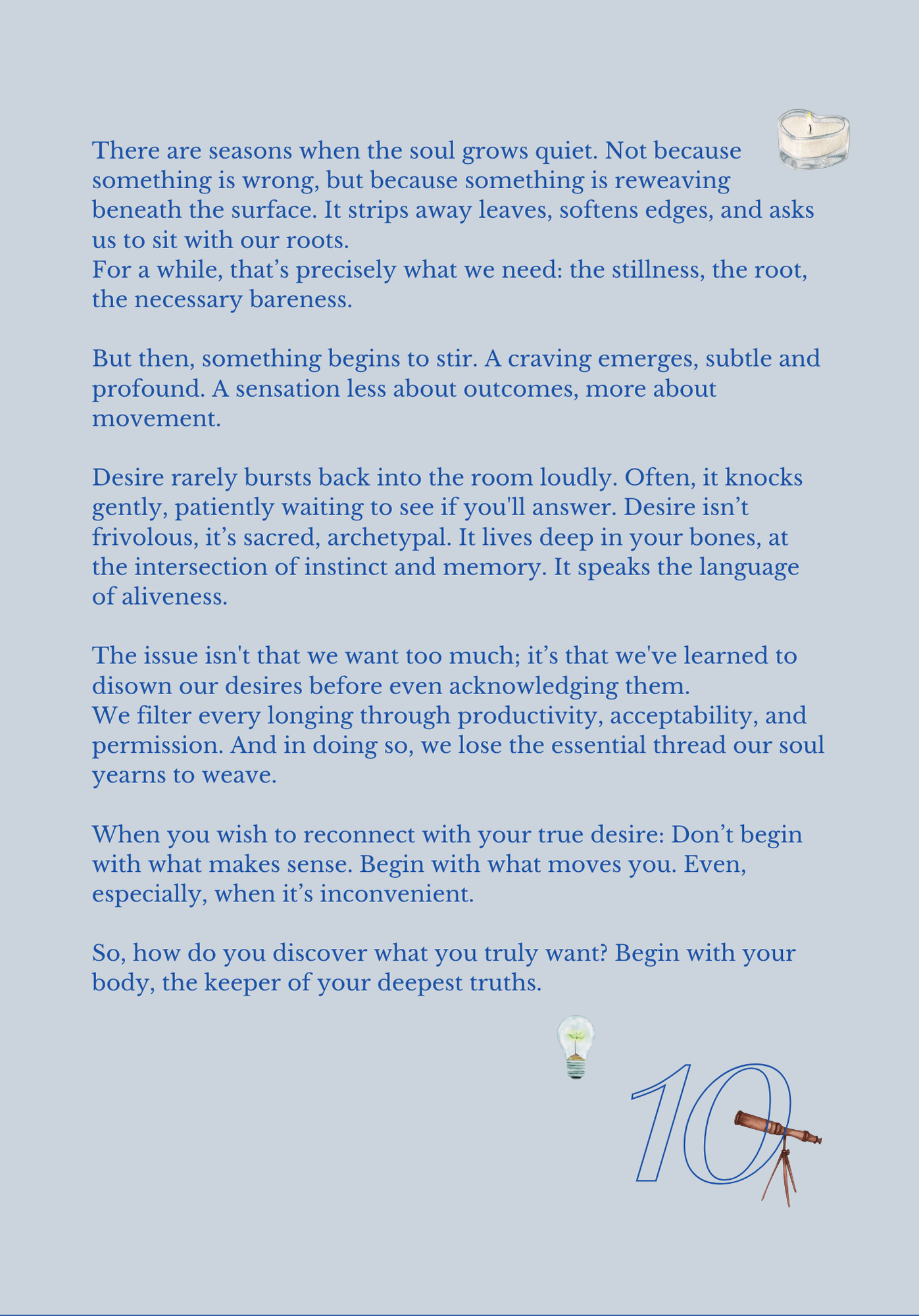 Desire is Sacred: Your cravings aren't frivolous; they are the language of aliveness. We often disown our desires because they don't seem "productive" or "useful".